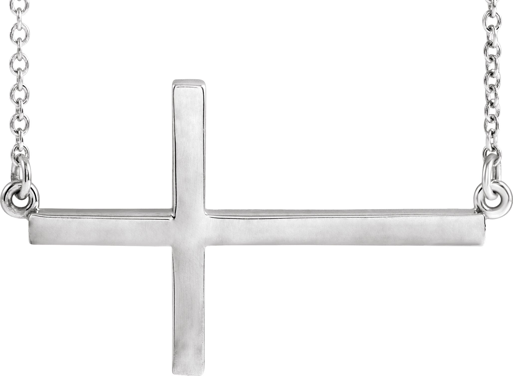 14K White 28x16.2 mm Sideways Cross 16-18" Necklace