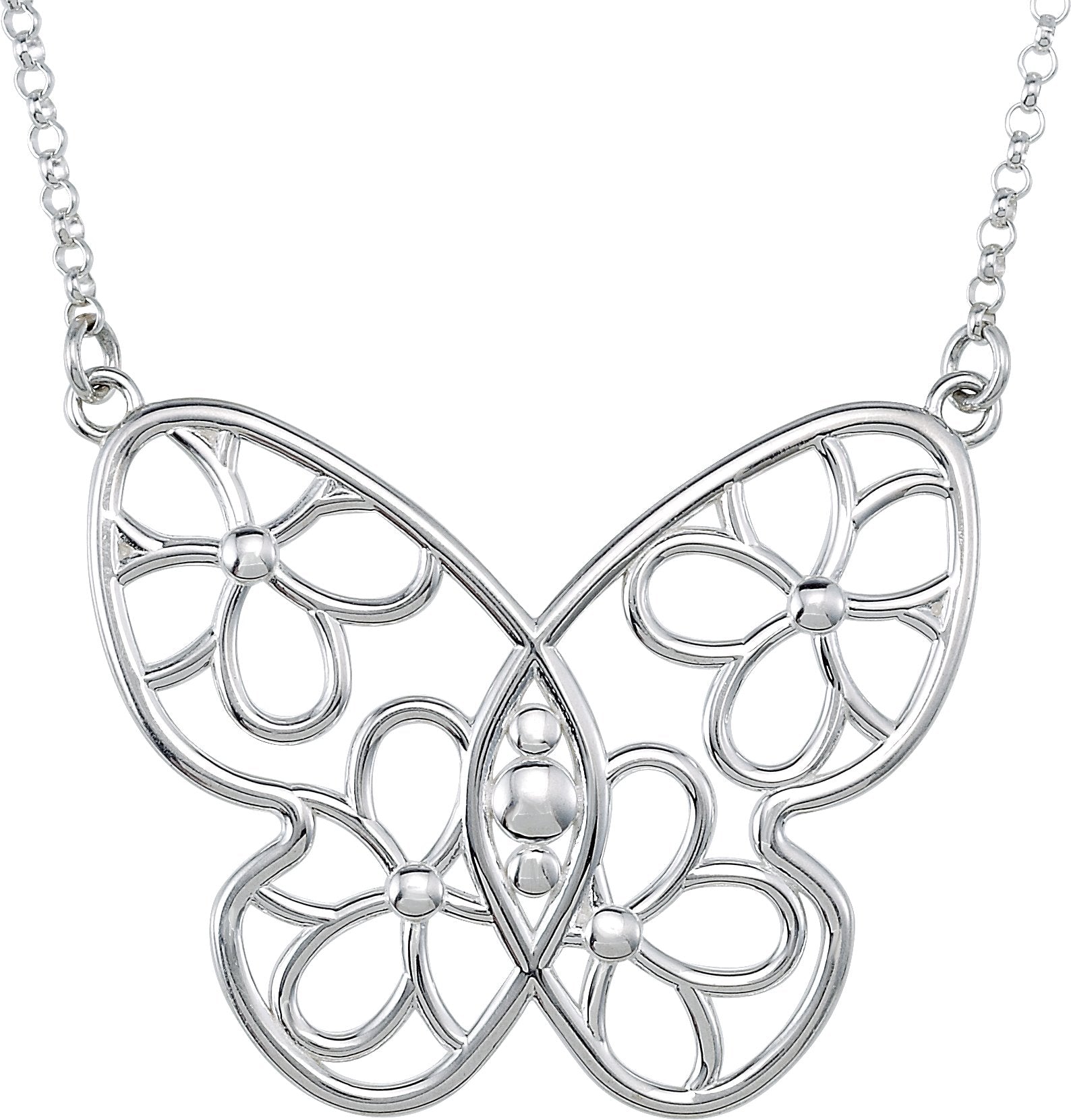 Sterling Silver Butterfly & Floral 15.5" Necklace