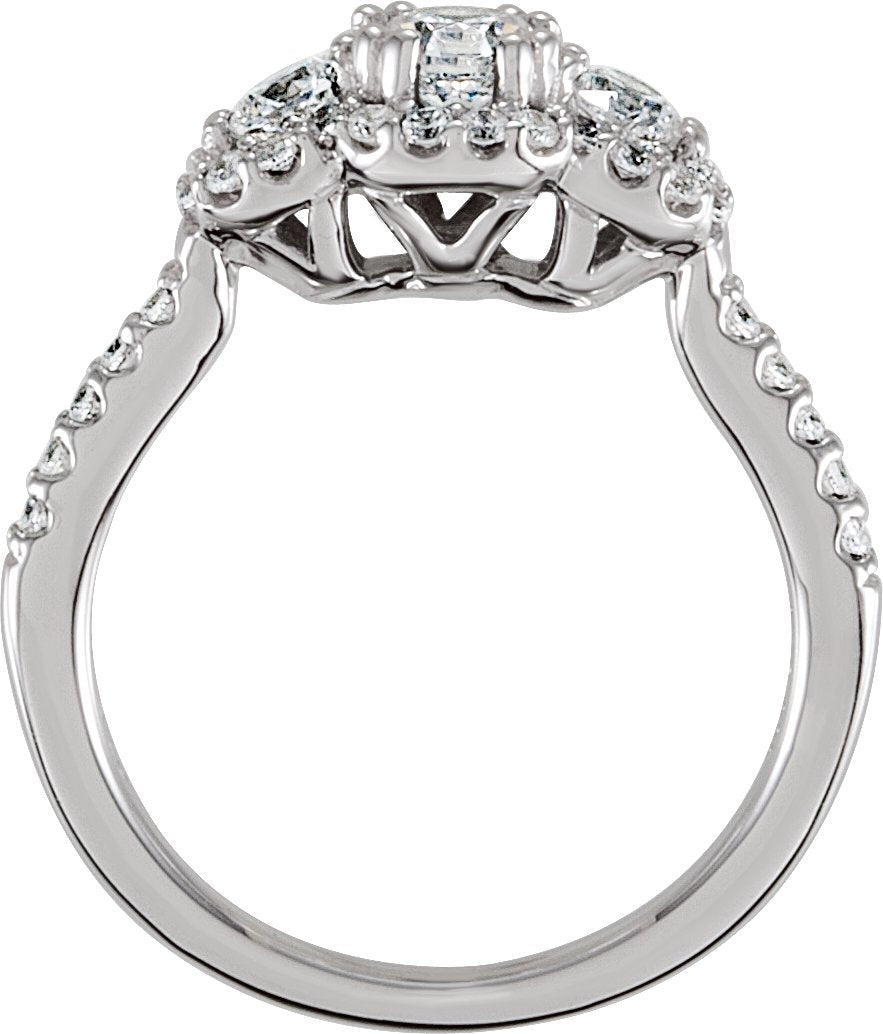Sterling Silver 4.4 mm Round Cubic Zirconia Three-Stone Halo-Style Ring Size 8