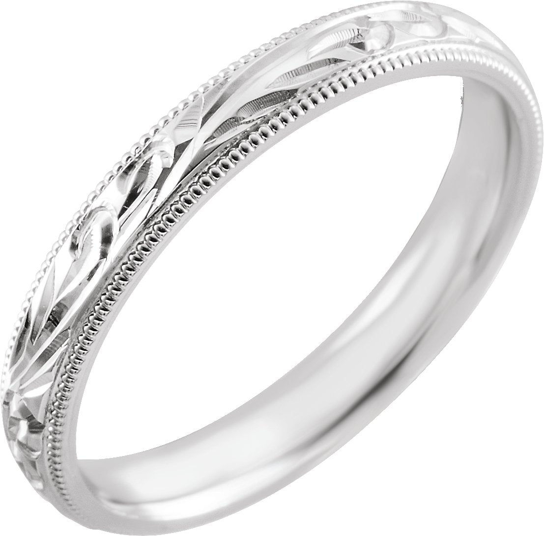 14K White 3 mm Milgrain Edge Sculptural Comfort-Fit Half Round Band Size 7