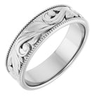 14K White 6 mm Milgrain Edge Floral Flat Band Size 10