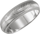 14K White 6 mm Milgrain Stepped-Edge Herringbone Pattern Half Round Band Size 10