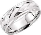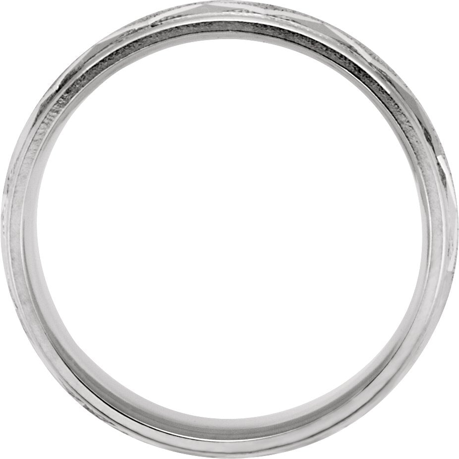 14K White 7 mm Milgrain Edge Geometric Faceted Comfort-Fit Half Round Band Size 12.5