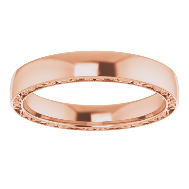 14K Rose Sculptural Inlay 4 mm Half Round Band Size 9.5
