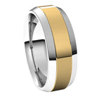 14K White/Yellow 7 mm Stepped Beveled-Edge Inlay Comfort-Fit Flat Band Size 13.5