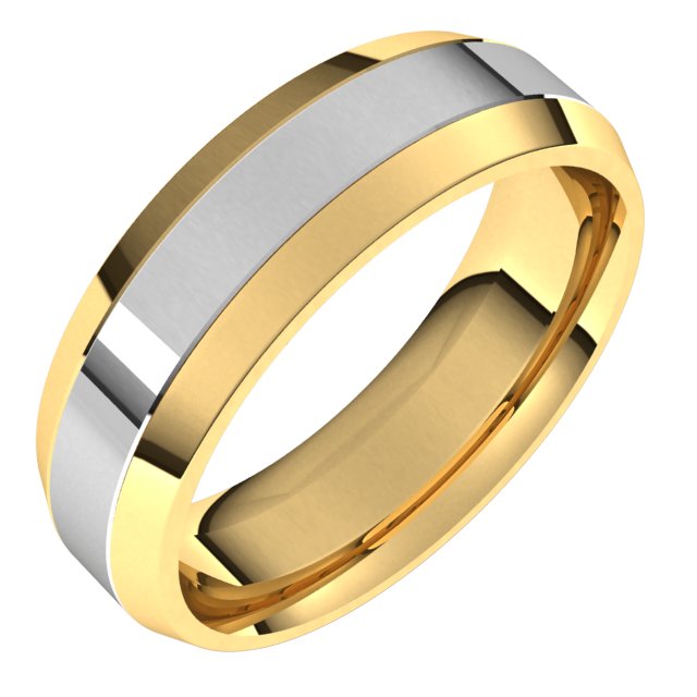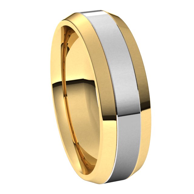 14K Yellow/White 6 mm Stepped Beveled-Edge Inlay Comfort-Fit Flat Band Size 8