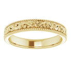 18K Yellow 3.2 mm Milgrain Edge Floral Flat Band Size 4