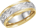 18K Yellow & Platinum 7 mm Milgrain Woven-Design Comfort-Fit Half Round Band Size 8