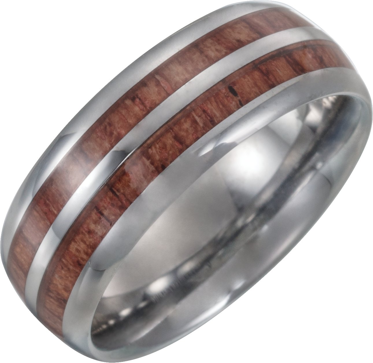 Tungsten 8 mm Rose Wood Inlay Comfort-Fit Band Size 8.5