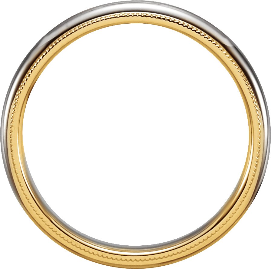 14K Yellow/White/Yellow 3.5 mm Milgrain Stepped-Edge Comfort-Fit Half Round Band Size 7
