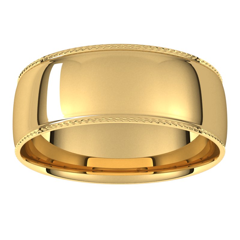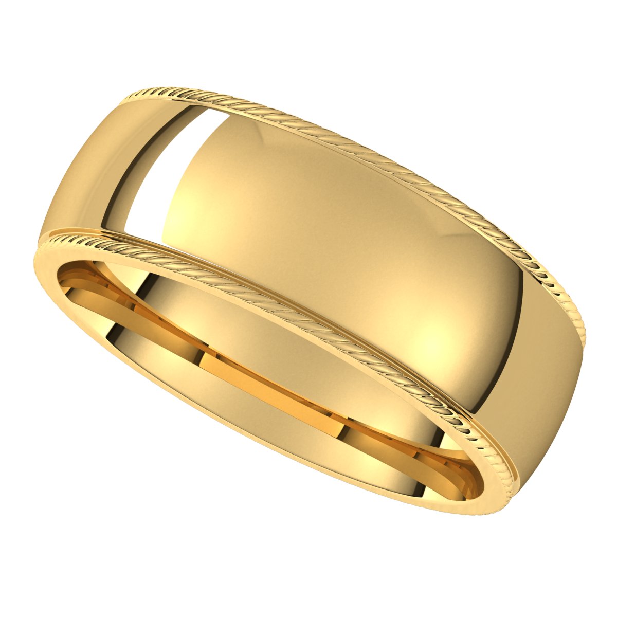 14K Yellow 7 mm Rope Comfort-Fit Half Round Band Size 9