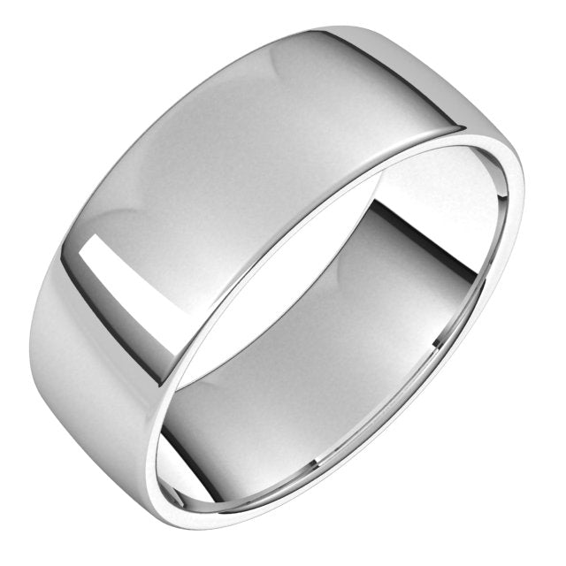 14K White 8 mm Lightweight Comfort-Fit Half Round Band Size 9