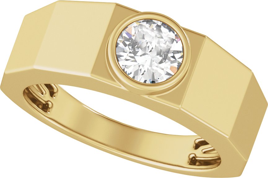 14K Yellow 7 mm Milgrain Edge Geometric Faceted Comfort-Fit Half Round Band Size 11.5