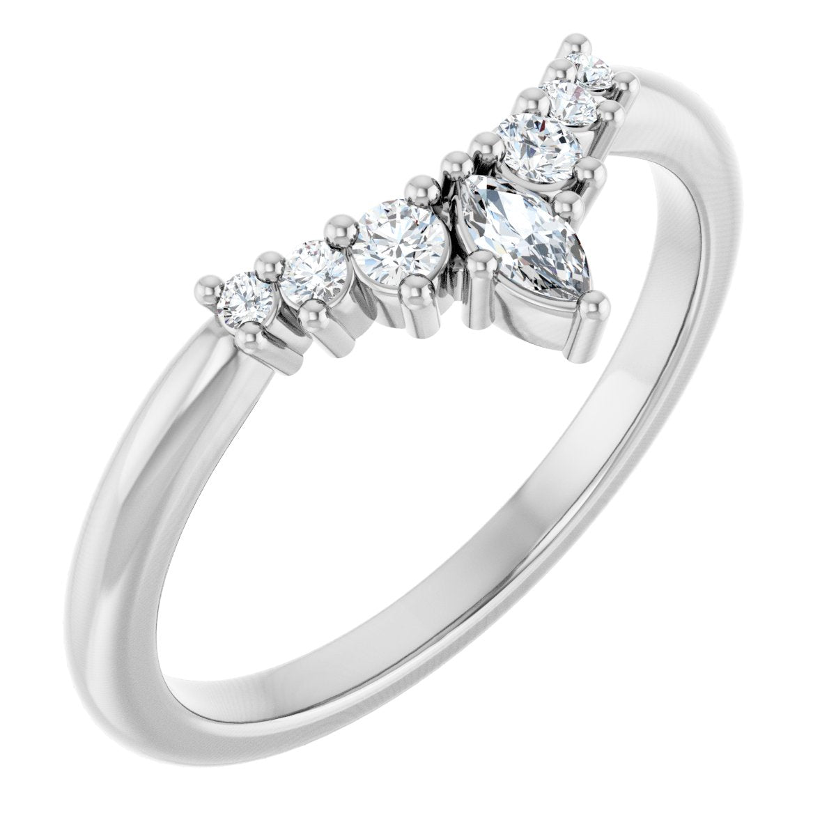 14K White 1/8 CTW Lab-Grown Diamond Contour Band