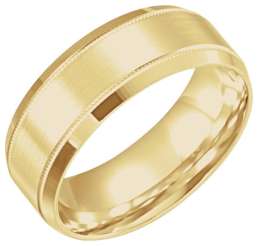 10K Yellow 8 mm Milgrain Beveled-Edge Comfort-Fit Half Round Band Size 8.5
