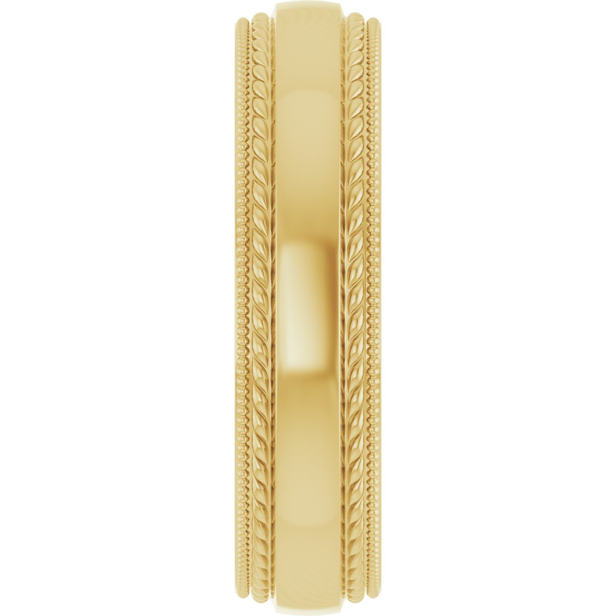 14K Yellow 5 mm Rope & Milgrain Stepped-Edge Comfort-Fit Half Round Band Size 9.5