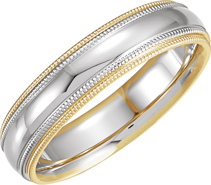 14K Yellow & 14K White Inlay 5.5 mm Double Milgrain Comfort-Fit Half Round Band Size 9