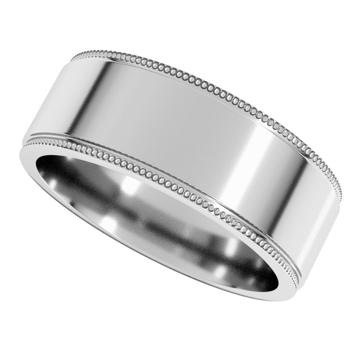 14K White 5 mm Milgrain Stepped-Edge Flat Band Size 8