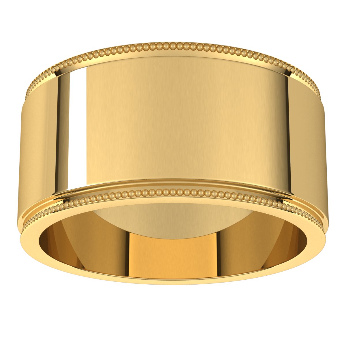 14K Yellow 10 mm Milgrain Stepped-Edge Flat Band Size 10