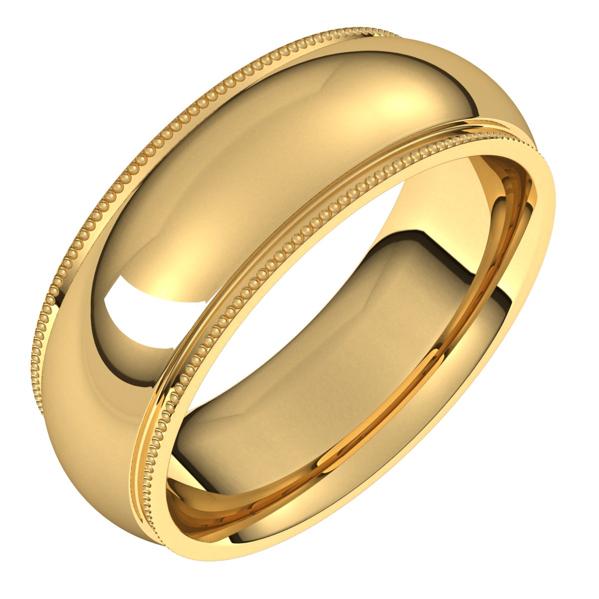 14K Yellow 7 mm Milgrain Stepped-Edge Comfort-Fit Half Round Band Size 8.5
