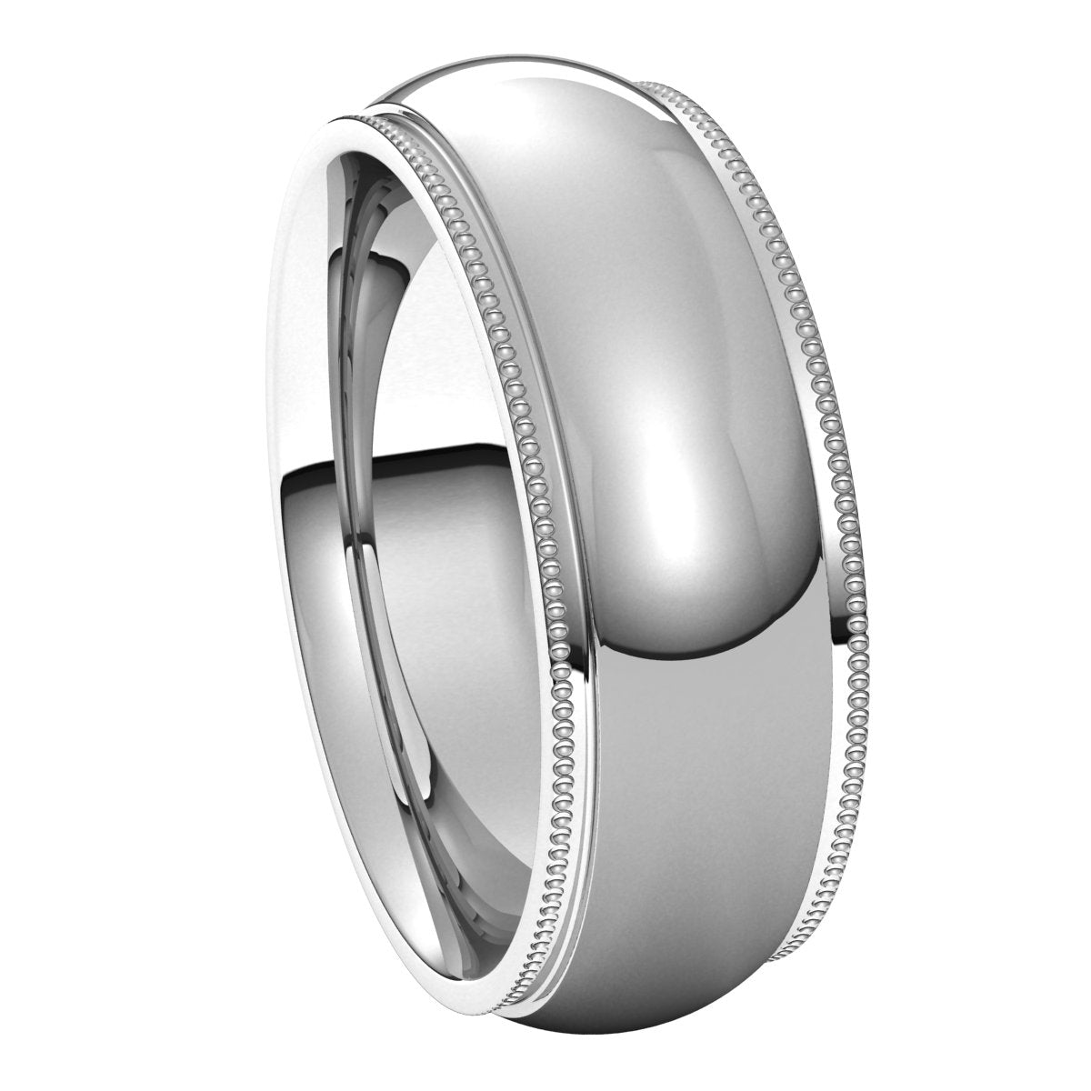 14K White 7 mm Milgrain Stepped-Edge Comfort-Fit Half Round Band Size 7.5