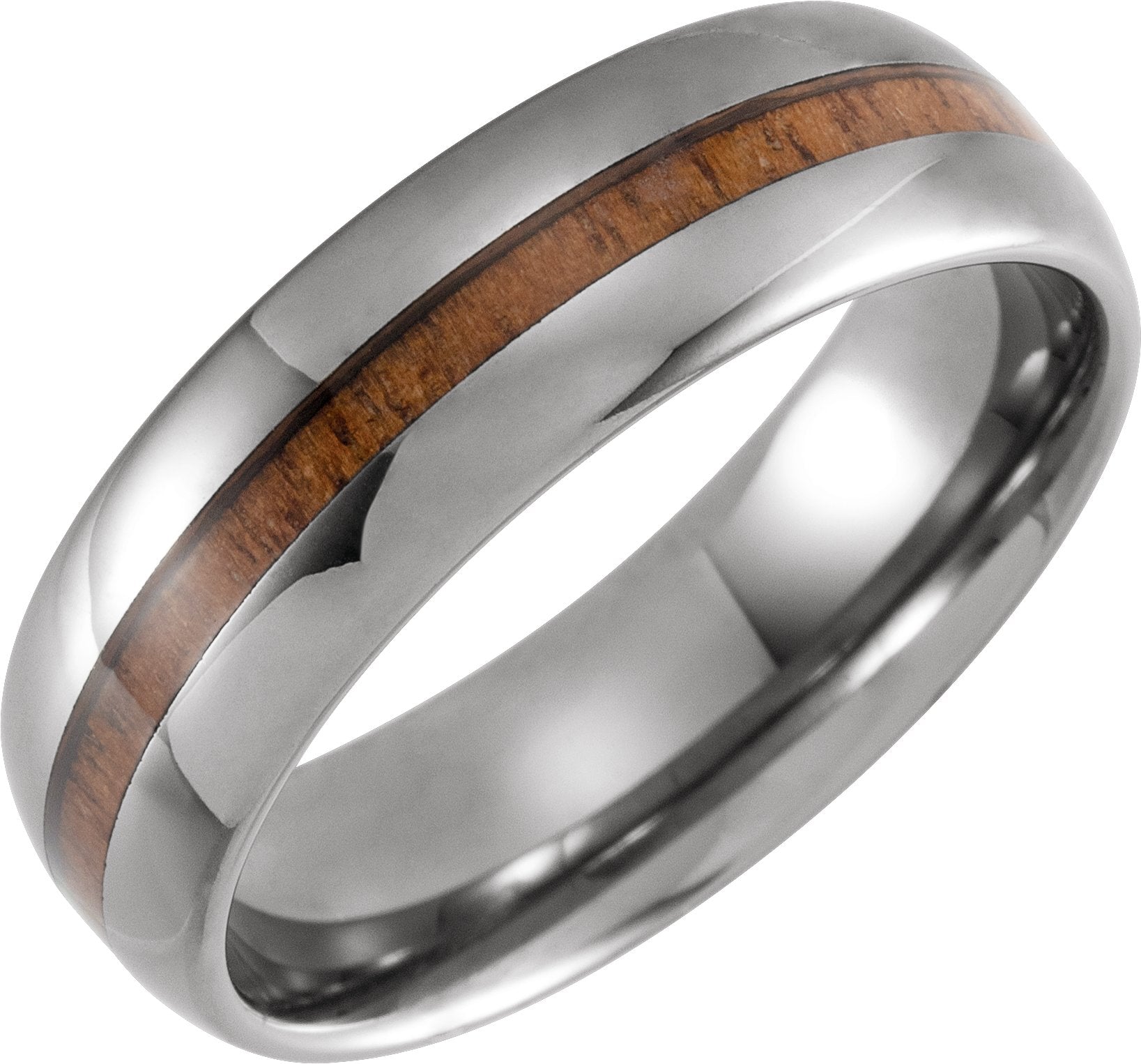 Tungsten 8 mm Acacia Wood Inlay Comfort-Fit Half Round Band Size 8.5
