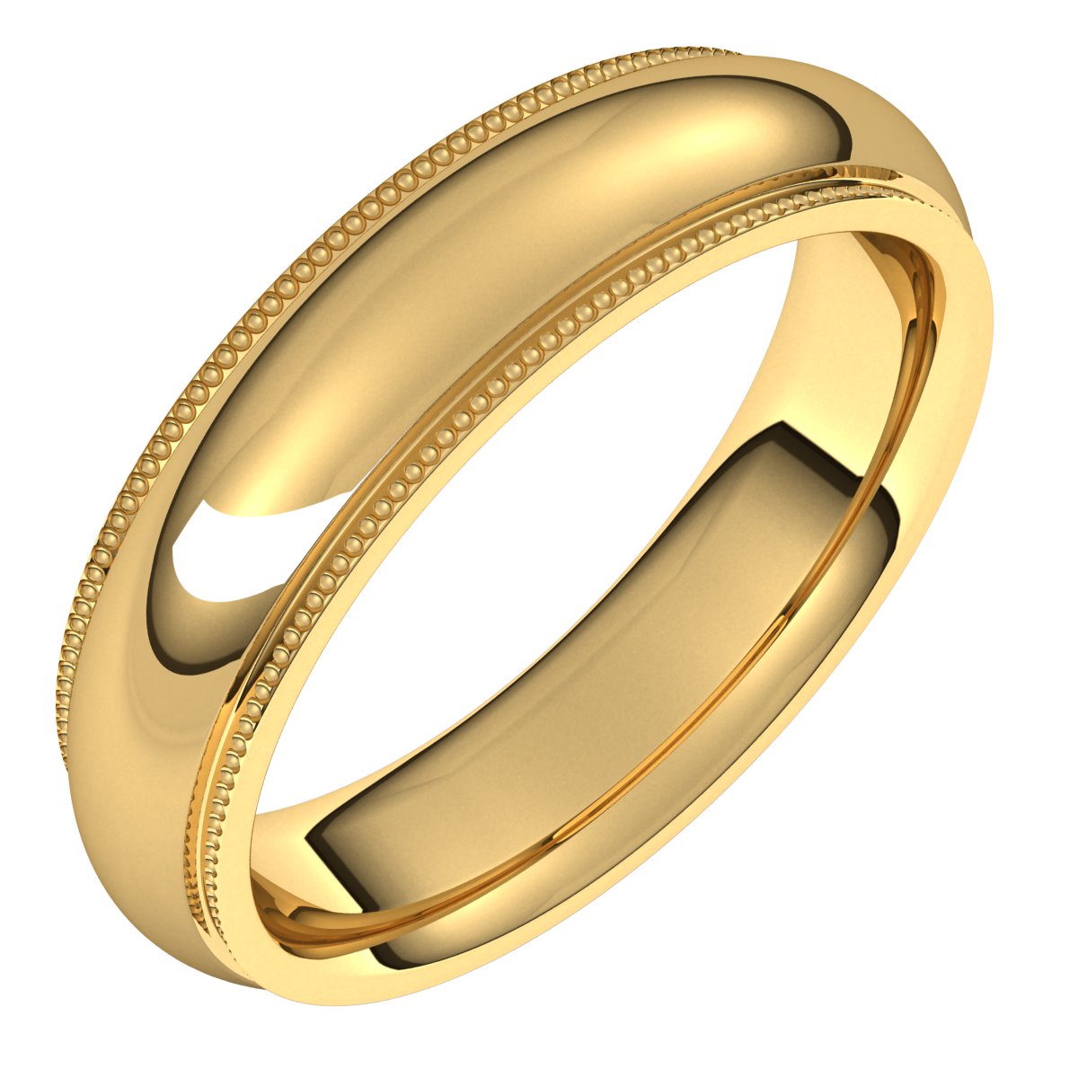 14K Yellow 4 mm Extra Large Milgrain Comfort-Fit Half Round Band Size 7
