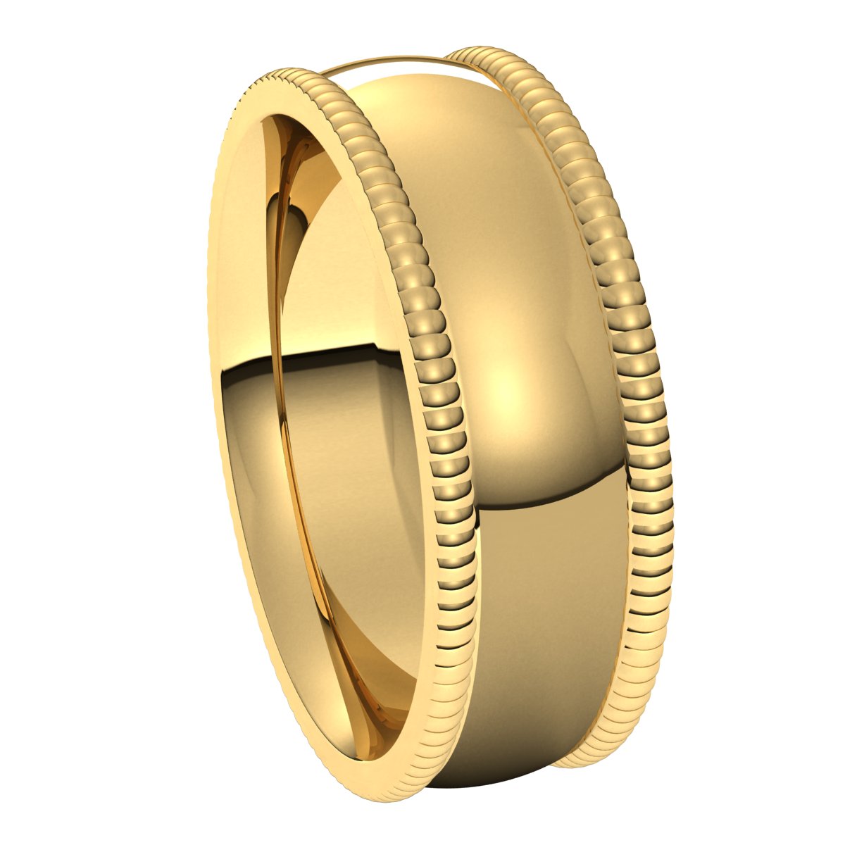 10K Yellow 7 mm Extra Large Milgrain Comfort-Fit Half Round Band Size 10