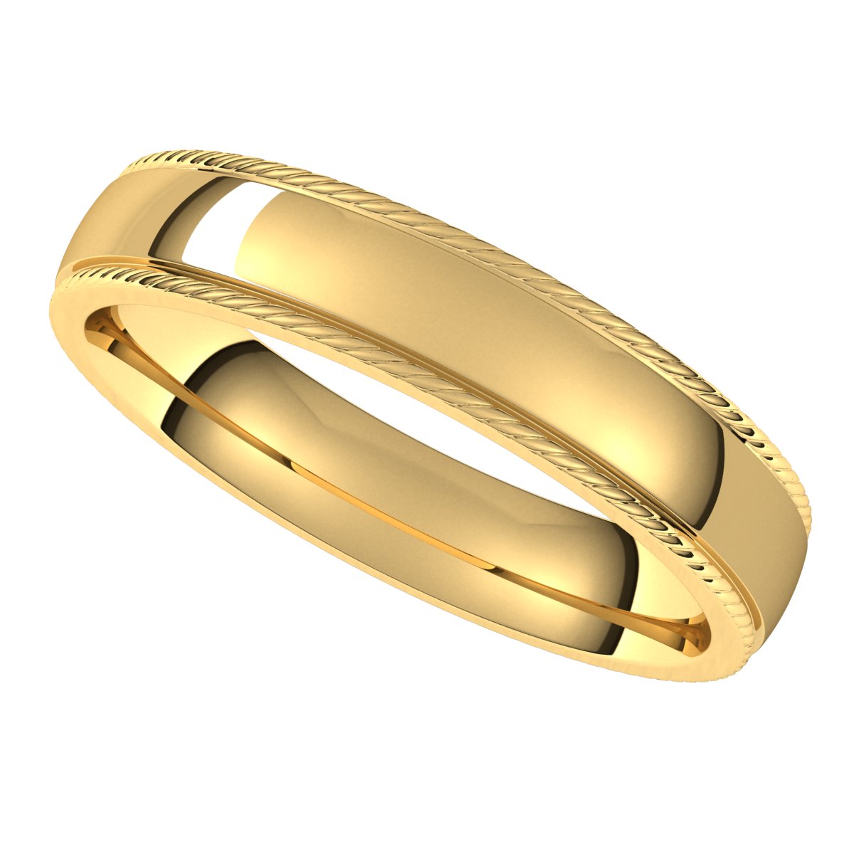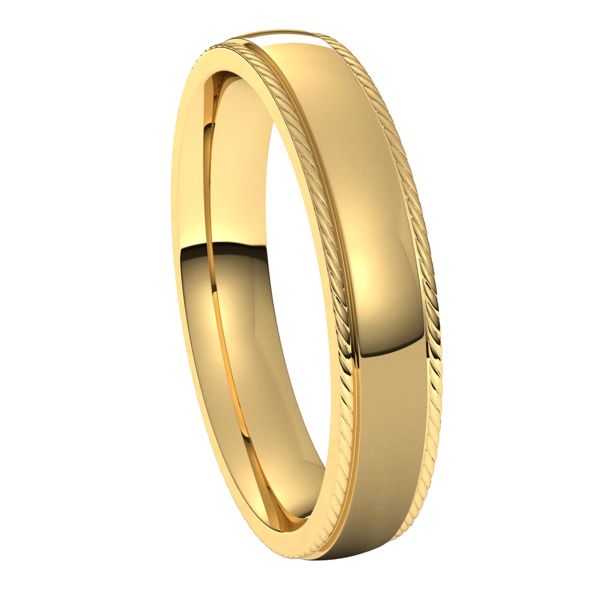 14K Yellow 4 mm Rope Comfort-Fit Half Round Band Size 15