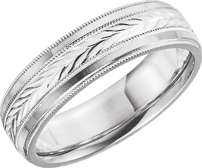 14K White 6 mm Milgrain Wheat Pattern Comfort-Fit Half Round Band Size 9