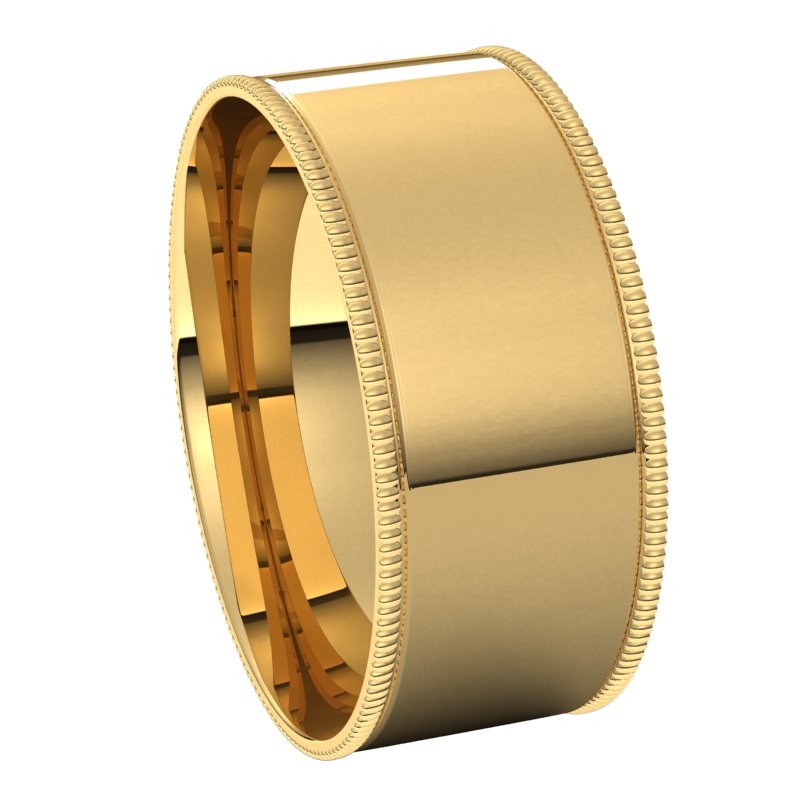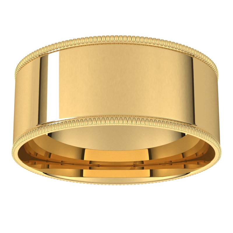 14K Yellow 8 mm Milgrain Comfort-Fit Flat Band Size 11