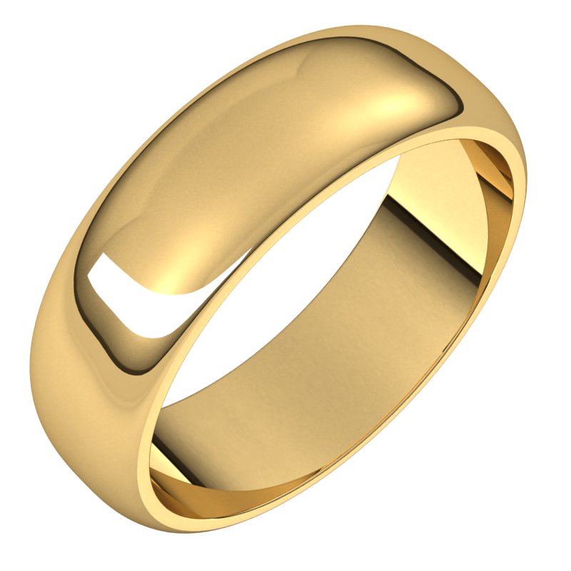 14K Yellow 6 mm Lightweight Comfort-Fit Half Round Band Size 5.5