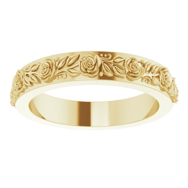 14K Yellow 2.7 mm Floral Flat Band Size 4