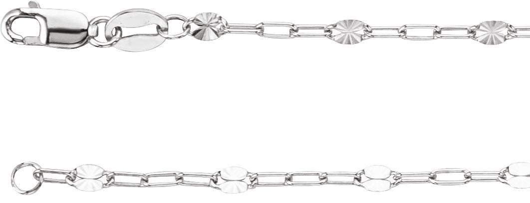 Sterling Silver 2.5 mm Light Paperclip-Style Starburst Mirror 16" Chain