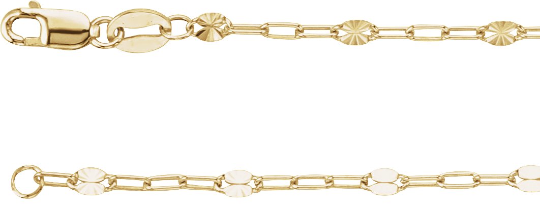 14K Yellow Gold-Filled 2.5 mm Light Paperclip-Style Starburst Mirror 16" Chain