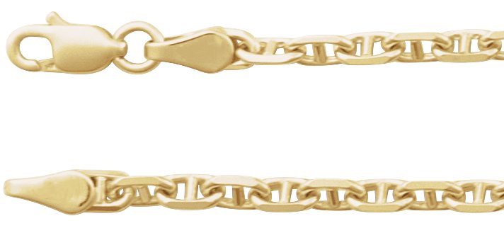 14K Yellow Gold 2.6 mm Diamond-Cut Anchor 16" Chain