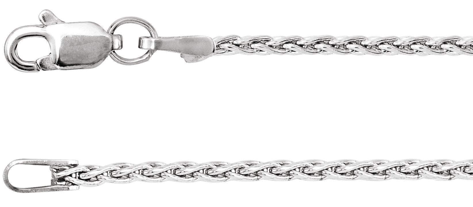 Rhodium-Plated Sterling Silver 1.5 mm Wheat 16" Chain