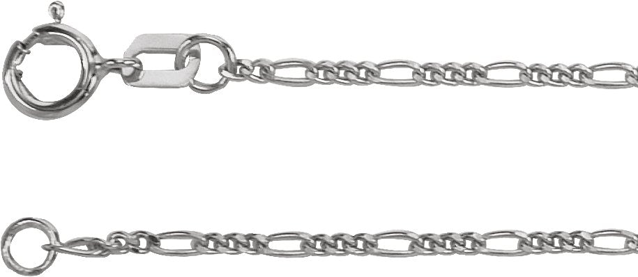 14K White Gold 1.28 mm Figaro 7" Chain
