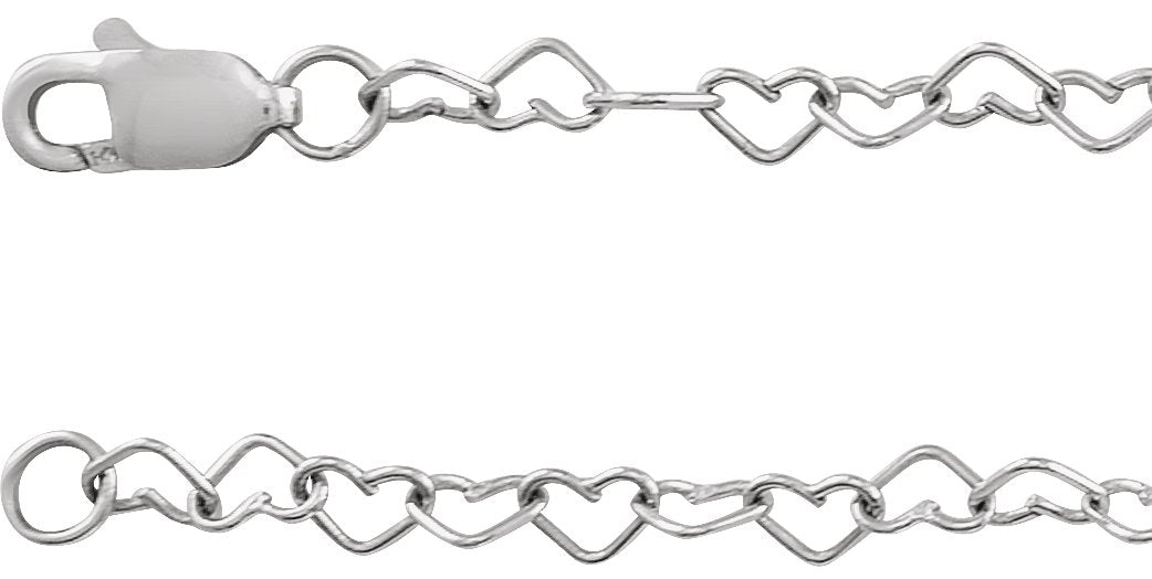 14K White Gold 3.2 mm Heart Cable 7" Chain