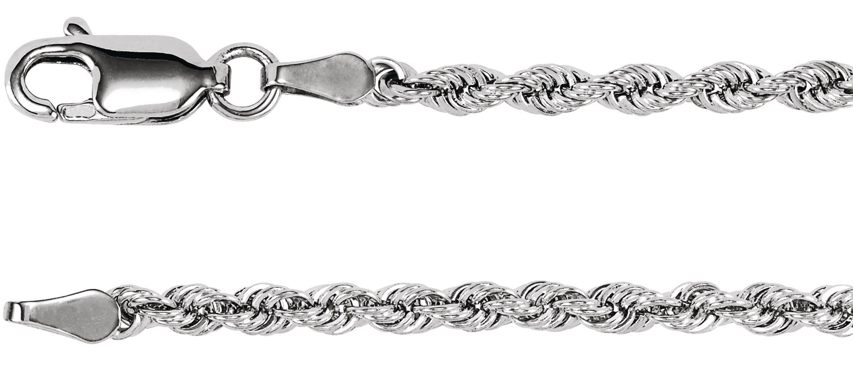 14K White Gold 2.5 mm Rope 7" Chain