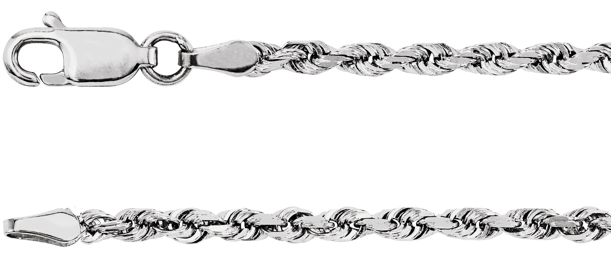 14K White Gold 2.5 mm Diamond-Cut Rope 24" Chain