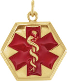 14K Yellow Gold Engravable Red Enamel Medical Identification Pendant