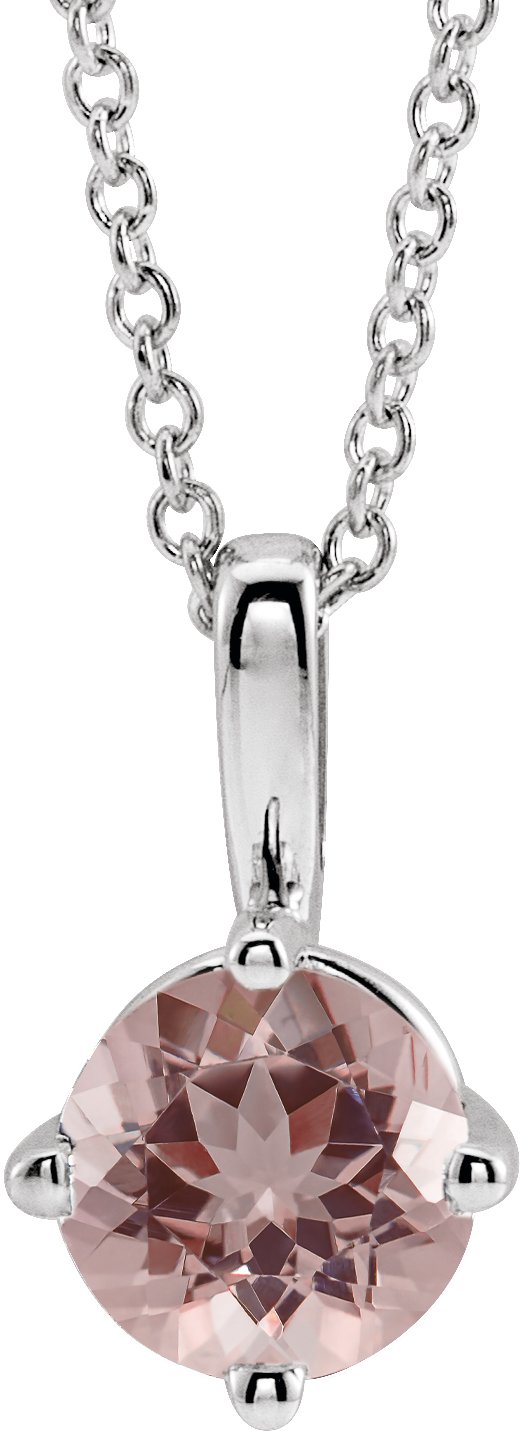 Sterling Silver 5 mm Natural Pink Morganite Solitaire 16-18" Necklace