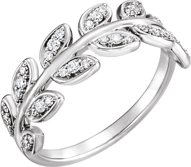 14K White 1/5 CTW Natural Diamond Leaf Ring