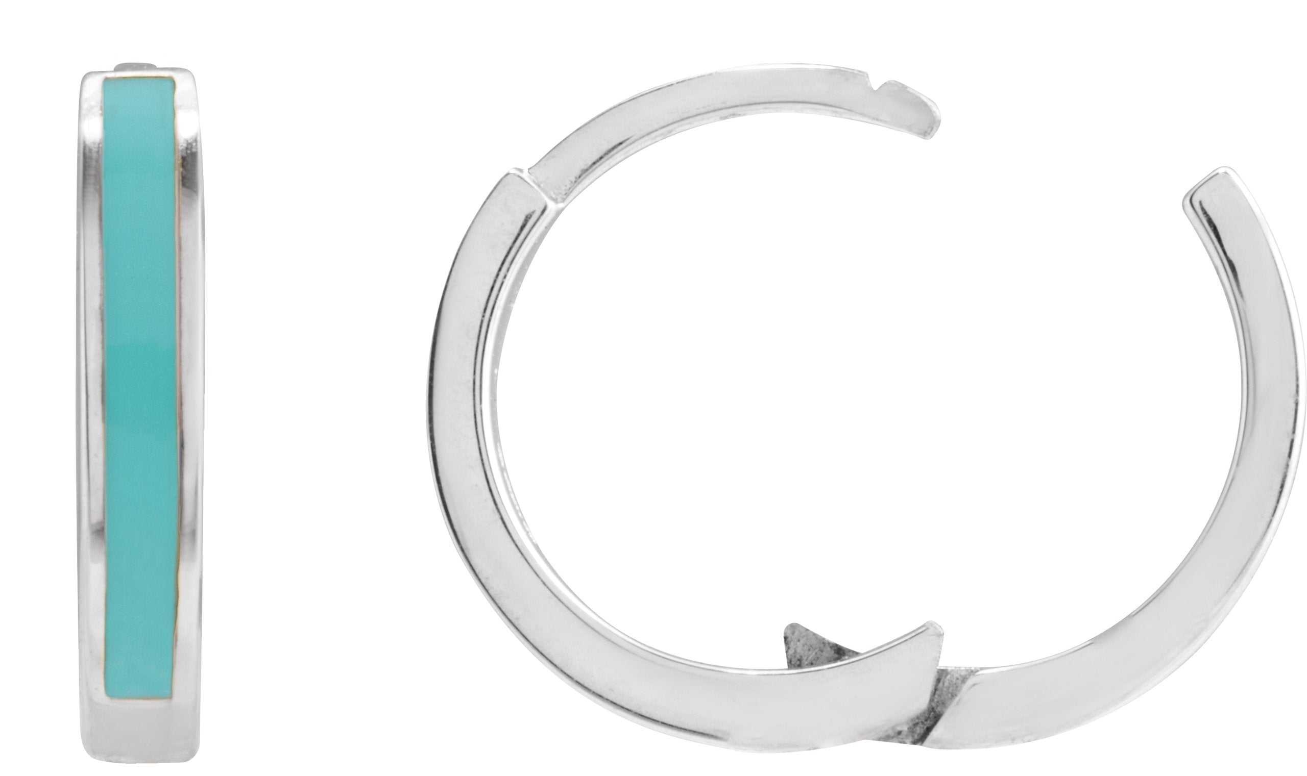 14K White Turquoise Enamel Hinged 12.1 mm Hoop Earrings