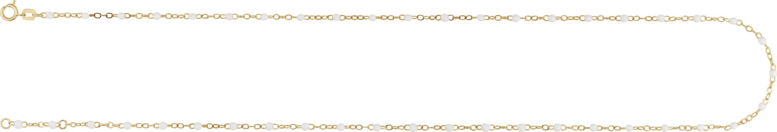 14K Yellow 2 mm Adjustable White Enamel Bead 9-10" Chain
