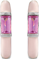 14K White Natural Pink Tourmaline & Pink Enamel Hinged 11 mm Hoop Earrings