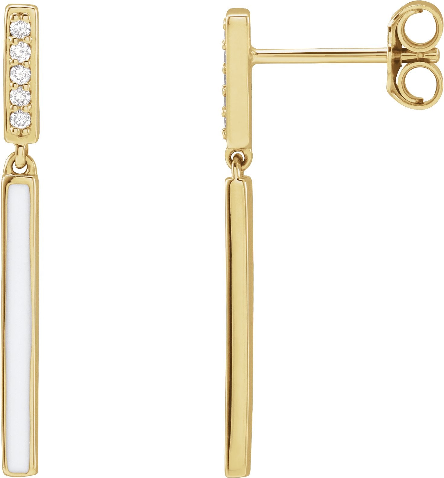 14K Yellow .06 CTW Natural Diamond & White Enamel Bar Earrings