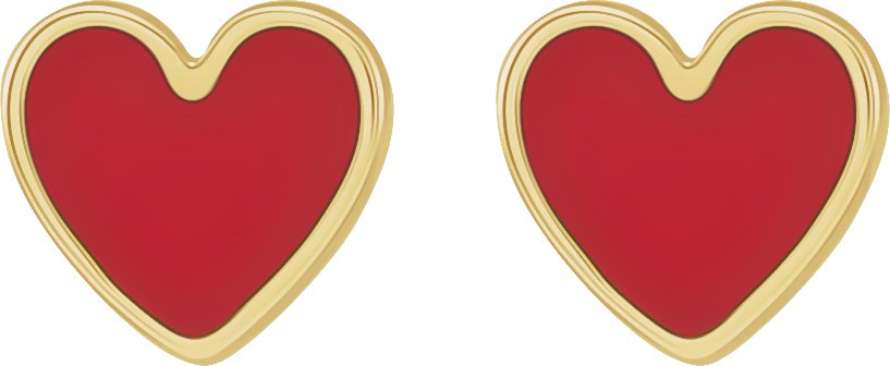 14K Yellow Red Enamel Heart Earrings