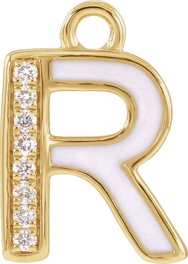 14K Yellow Petite Pavé™ .025 CTW Natural Diamond Blush Enamel Initial R Dangle